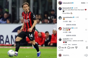 莫德里奇社媒晒出比赛照片,并写道:“重要的胜利,全队表现都很出色!加油米兰!”