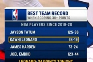 下一篇: 这赛季很顶!伦纳德单赛季5次单场40+ 队史第三人