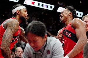 此役猛龙前锋英格拉姆表现出色,打了38分钟20投13中,三分6中5、罚球7中5砍全场最高36分外加7篮板3助攻1抢断,正负值+17也是最高。