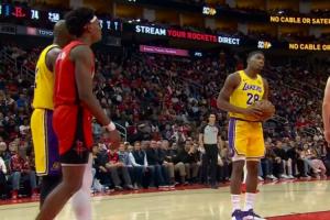 GIF-八村塁没卡位被阿门抢到篮板,遭詹姆斯拍手批评!