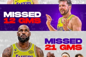 里夫斯缺阵26场/詹姆斯21场/东契奇12场!湖媒:湖人仍是顶级强队