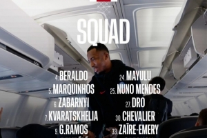 巴黎对阵尼斯名单:登贝莱领衔,阿什拉夫、巴尔科拉、内维斯缺席