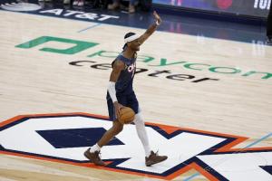 亚历山大缺席9场比赛后,本场迎来复出,但进攻状态并不稳定。亚历山大开局5中1后18中10,但末节再次6投1中,加时赛也没有再出战。